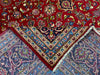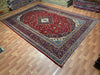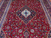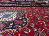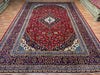 This 9'6" × 13'8" Persian hand-knotted wool rug boasts a bold red background adorned with an intricate central medallion and floral details. The deep navy border frames the design with elegance, enhancing its rich and regal aesthetic. Crafted with precision from fine wool, this rug combines traditional Persian artistry with enduring quality, making it perfect for large living rooms, dining rooms, or grand statement areas.