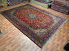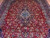This 9'9" × 13'10" hand-knotted wool rug is a magnificent Persian piece showcasing a deep red field with an intricate floral medallion. The navy border adds contrast and balance, framing the design beautifully. Ideal for large living rooms, dining spaces, or traditional interiors, this rug combines elegance, craftsmanship, and durability. Its fine wool pile ensures a soft feel underfoot and long-lasting quality.