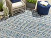 The Eagean EAG-2306 rug refreshes any space with its cool blue tones and geometric patterning. Outdoor-safe and low-maintenance, it brings both style and practicality to patios, kitchens, sunrooms, and entryways.