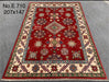 4’10” x 6’9” Hand-Knotted Kazak Wool Rug – Deep Red with Geometric Motifs
