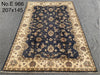 4’7 x 6’7 Hand-Knotted Afghan Chobi Rug – Navy & Beige