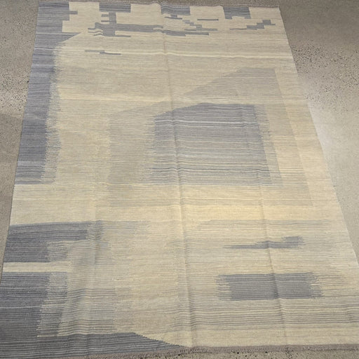 Handwoven Wool Kilim Area Rug – Ivory / Grey Abstract – 5'11" x 9'2"