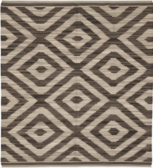 Handwoven Wool Kilim Area Rug – Brown / Beige Diamond – 5'7" x 9'11"