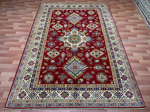Original price $3,429.54 - Original price $3,429.54Original price$3,429.54$3,429.54 - $3,429.54Current price $3,429.54| /6'5" × 9'5" Hand-Knotted Kazak Wool Rug – Red Field & Ivory Border