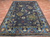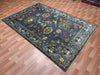 5'8" x 8'4" Hand-Knotted Chobi Wool Rug – Charcoal Field with Aqua Border