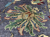 This 5'8" × 8'4" Chobi rug features a deep charcoal-gray field highlighted with flowing floral vines in ivory, sage, rust, and teal. The aqua border adds brightness and contrast, creating a striking balance of modern elegance and traditional craftsmanship.
