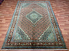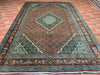 6’5” × 9’4” Hand-Knotted Wool Rug – Rust Red with Teal Diamond Medallion & Animal Border