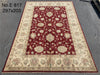 6’6 x 9’7 Afghan Chobi Wool Rug – Rich Red & Ivory Elegance