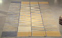 Clean, modern, and full of warmth — this handwoven wool kilim features a beautiful panel design with soft grey framing and layered gold, ivory, and grey stripes. The subtle linear texture gives it a calm, contemporary look that pairs perfectly with light woods, black accents, and neutral furniture.