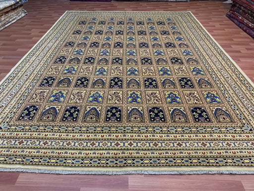 Original price $3,649.10 - Original price $3,649.10Original price$3,649.10$3,649.10 - $3,649.10Current price $3,649.10| /8’11x11'9 Hand-Knotted Persian-Style (Indo-Persian) Wool Area Rug- Green/Beige