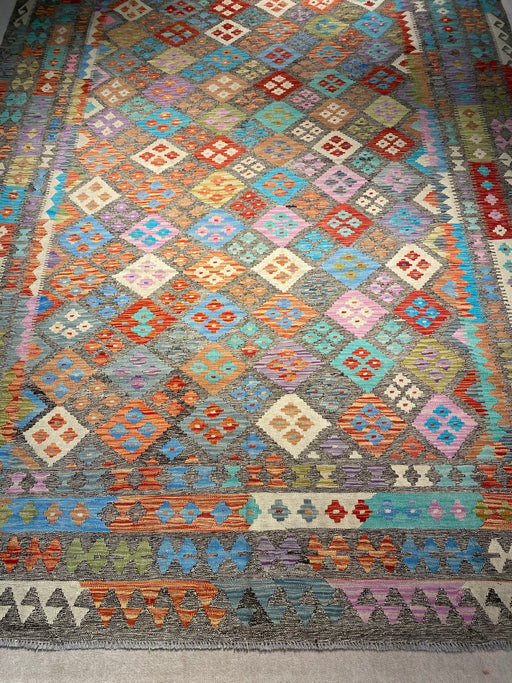 KB RugsHand-knotted:Authentic hand-knotted Killim crafted in Iran, dyed in Orange/Blue/Pink/Green/Brown Colour Pallets. The dense New Zealand Wool pile an...