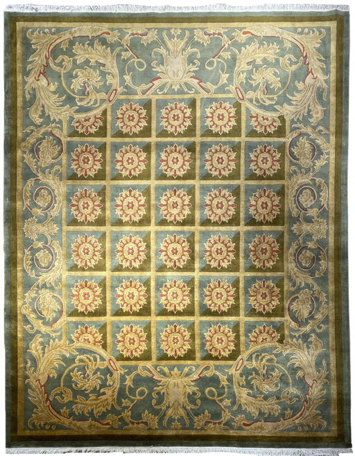 Original price $3,780.00 - Original price $3,780.00Original price$3,780.00$3,780.00 - $3,780.00Current price $3,780.00| /9'X12' Hand-Knotted Persian-Style (Indo-Persian) Wool Area Rug- Green/Grey