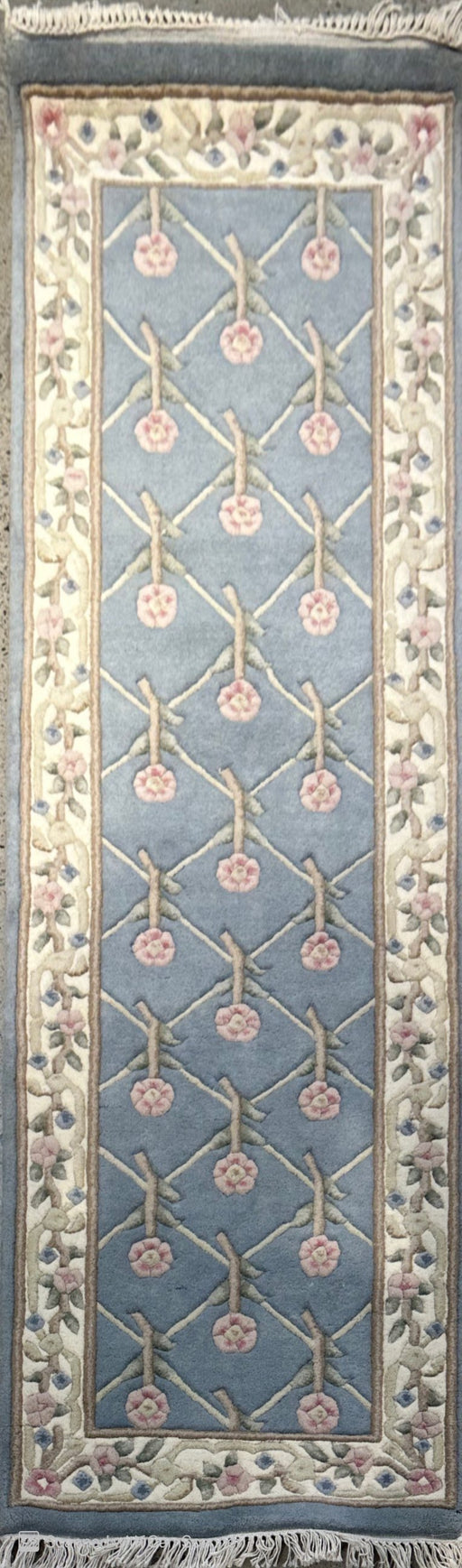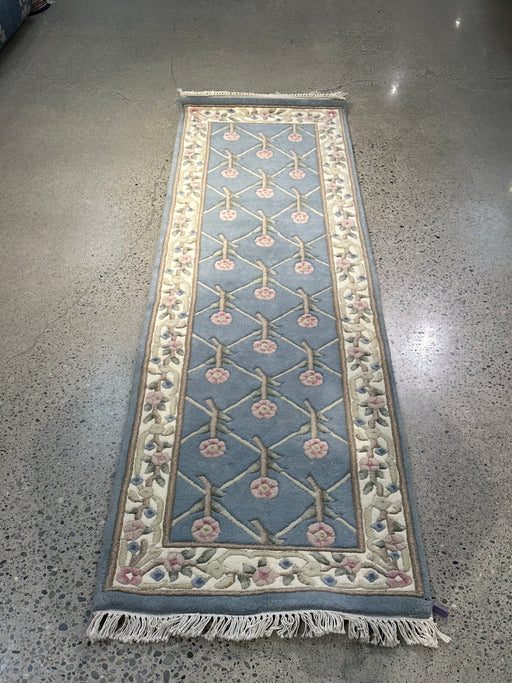 Original price $1,868.00 - Original price $1,868.00Original price$1,868.00$1,868.00 - $1,868.00Current price $1,868.00| /2'10" × 9'7" Hand-Knotted Wool Runner Rug – Blue with Ivory Floral Border