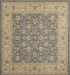 Hand-Knotted Chobi Wool Square Rug – Blue / Beige Floral – 9'5" x 9'7"