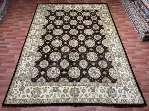 Original price $7,988.25 - Original price $7,988.25Original price$7,988.25$7,988.25 - $7,988.25Current price $7,988.25| /9' x 14' Hand-Knotted Chobi Wool Rug – Chocolate & Ivory Medallion Design