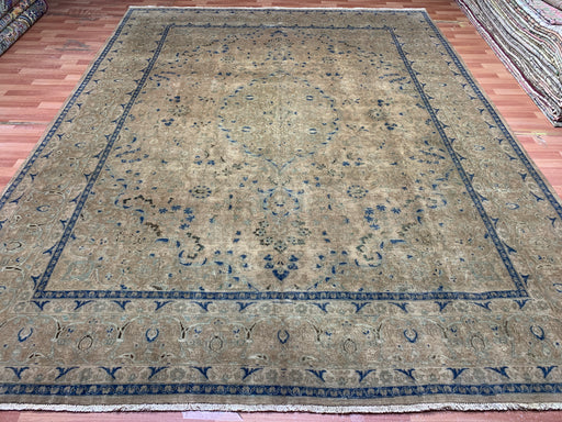 Original price $7,855.00 - Original price $7,855.00Original price$7,855.00$7,855.00 - $7,855.00Current price $7,855.00| /9’8” × 12’6” Hand-Knotted Wool Rug – Camel Brown Field with Navy & Taupe Floral Border
