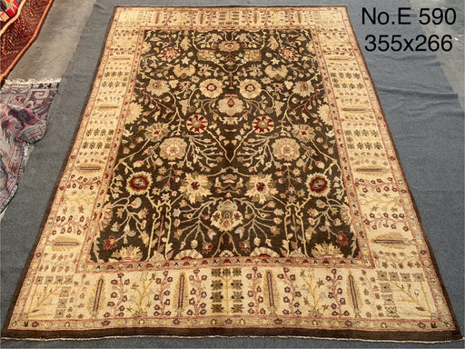 Original price $5,762.30 - Original price $5,762.30Original price$5,762.30$5,762.30 - $5,762.30Current price $5,762.30| /9' x 12' Hand-Knotted Chobi Wool Rug – Brown & Ivory Floral Elegance