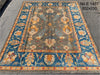 8’2 x 9’11 Afghan Chobi Rug – Grey & Blue with Gold Accents