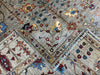 This exquisite 8'3" x 9'4" hand-knotted Chobi rug features a rare soft grey field beautifully balanced with colorful floral and vine motifs. Subtle red, gold, blue, and ivory accents create an elegant yet versatile palette, ideal for both traditional and modern interiors. Handcrafted from pure wool, it combines durability with luxurious comfort underfoot.
