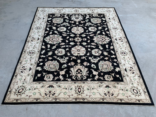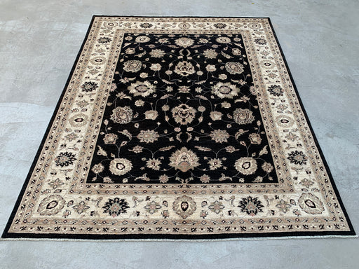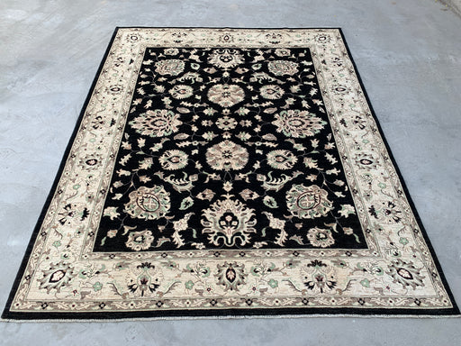 kbrugsBring timeless elegance and bold contrast into your home with this one-of-a-kind hand-knotted Peshawari Chobi wool rug. Featuring a rich black fiel...
