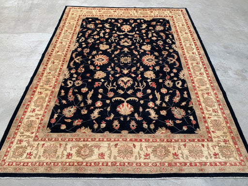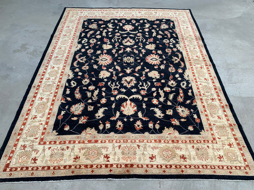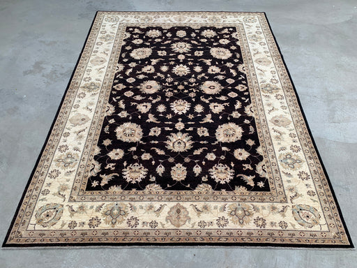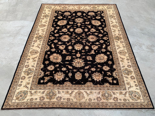 kbrugsBring timeless elegance and bold contrast into your home with this one-of-a-kind hand-knotted Peshawari Chobi wool rug. Featuring a deep black fiel...