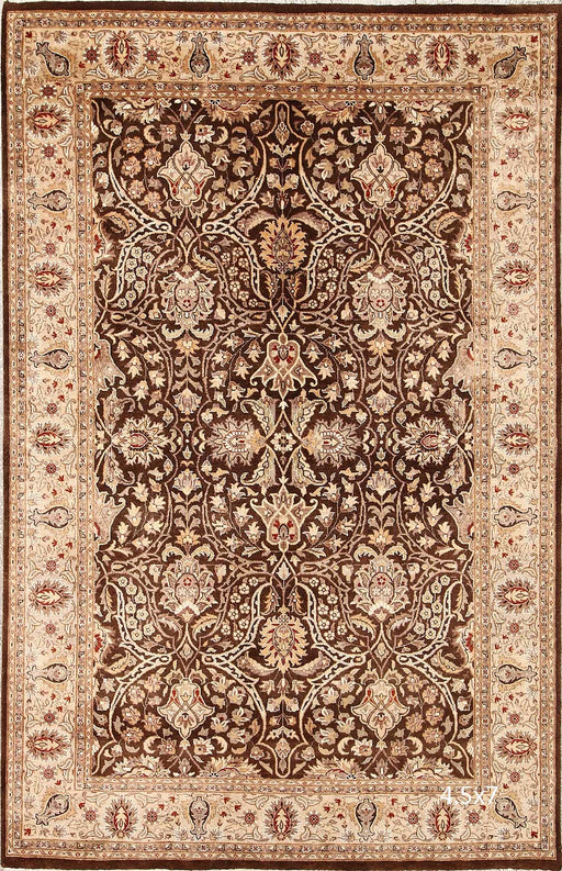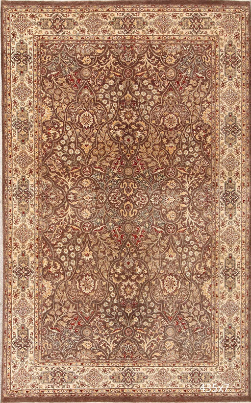 kbrugsABOUT THIS RUG This 6’5” × 9’6” hand-knotted Persian wool rug features a muted beige-brown field richly detailed with allover floral motifs. The in...