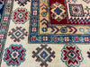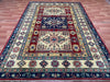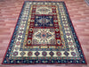 5'4" × 7'11" Hand-Knotted Kazak Wool Rug – Ivory, Red & Navy Geometric Design