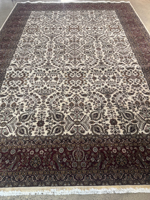 Original price $4,299.00 - Original price $4,299.00Original price$4,299.00$4,299.00 - $4,299.00Current price $4,299.00| /Hand-Knotted Wool Area Rug – Ivory Floral with Deep Brown Border – 10' x 14'