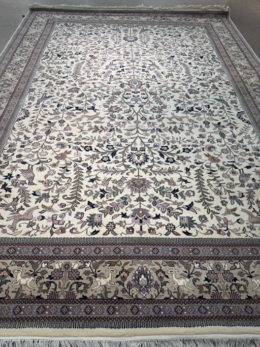 Original price $6,597.50 - Original price $6,597.50Original price$6,597.50$6,597.50 - $6,597.50Current price $6,597.50| /Hand-Knotted Palace-Style Wool Rug – Ivory Floral with Animal Motifs – 10' x 13'8"