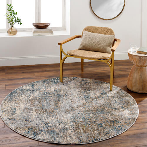 kbrugsThe Mirabel MBE-2303 rug brings a beautifully textured, timeworn aesthetic to any space. Its softly distressed palette blends taupe, denim blue, mu...