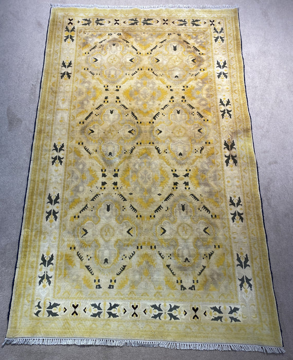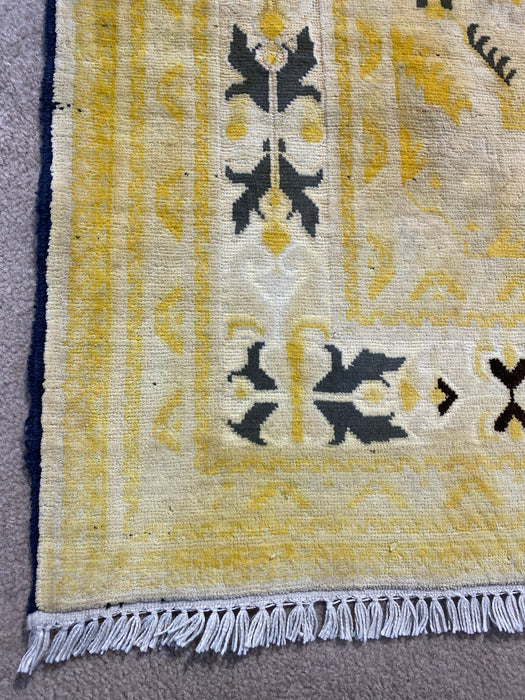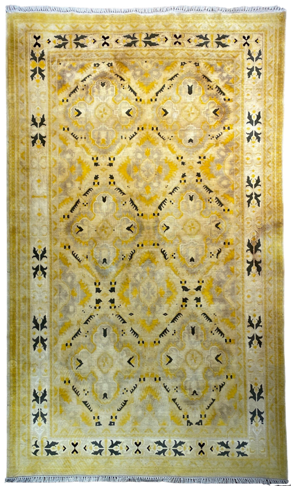 4'X6' Hand-Knotted Kashmiri Silk Area Rug- Yellow/Black