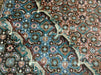 This 6’5” x 9’2” hand-knotted Persian wool rug features a striking central medallion in teal and brown tones, framed by an intricate all-over floral pattern. The detailed border adds elegance, making it a perfect piece for both traditional and modern interiors.