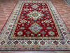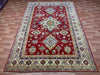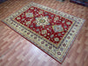 6'5" × 9'5" Hand-Knotted Kazak Wool Rug – Red Field & Ivory Border